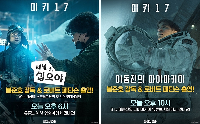 영화 ‘미키17’가 오늘(28일) 개봉하는 가운데 주역인 봉준호 감독과 배우 로버트 패틴슨이 유튜브 ‘채널십오야 - 나영석의 나불나불’과 ‘이동진의 파이아키아’를 통해 팬들과 만난다.