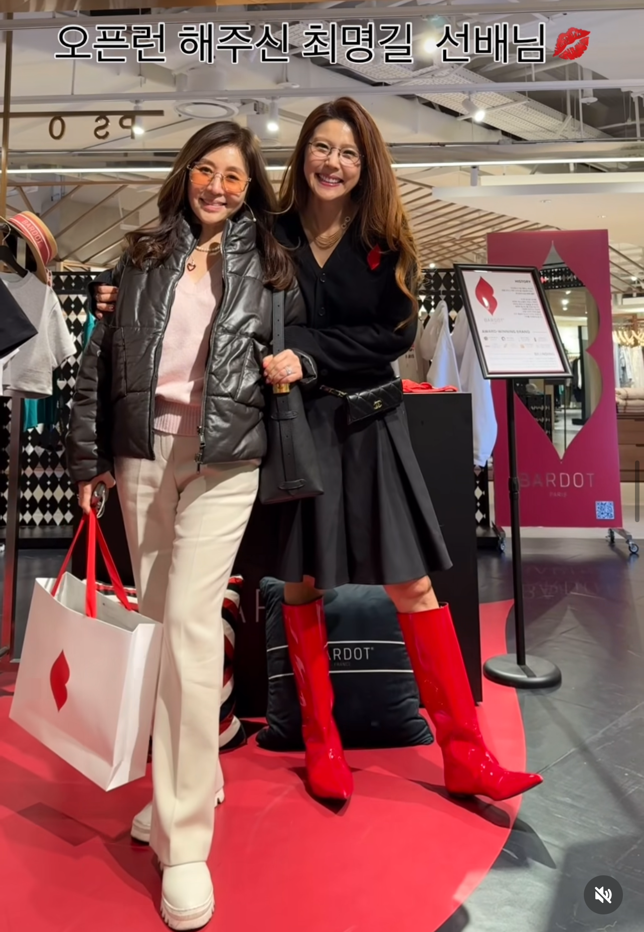 이윤미 대표는 최명길과 함께 찍은 사진을 SNS에 게재하며 “오늘 오픈런 해주신 멋진 선배님. 너무 멋지셔서 반해버렸당”이라며 감사 인사를 전했다. 오연수, 손지창 부부에게는 “첫 팝업에 와주신 오연수 언니랑 손지창 오빠. 커플룩도 역시”라며 바르도 의상을 입었음을 알리며 관심이 모아졌다.