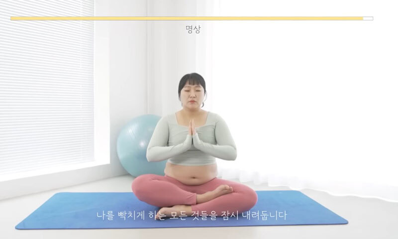 이후에도 이수지는 짐볼, 플랭크, 트위스트, 사바아사나 등 다양한 요가 동작을 선보였다.