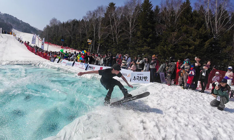 모나 용평 관계자는 “차가운 물웅덩이를 건너는 도전과 개성 넘치는 퍼포먼스가 어우러질 수 있는 발왕수플래시는 국내 스키어?보더들의 필수 이벤트로 자리매김하고 있다”고 소개했다.