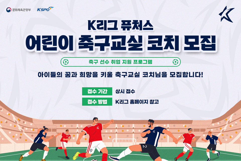한국프로축구연맹이 축구 유망주 어린이들을 지도할 ‘K리그 퓨처스 어린이 축구교실’ 코치를 공개 모집한다.