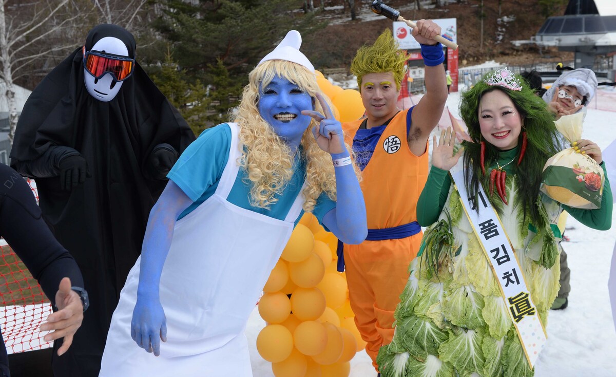 외국인 참가자도 적지 않았다. 호주 출신 유학생 애런 보티카 씨도 그 중 한 명. 그는 빨간색 가발과 농구 유니폼을 착용한 채 보드를 타고 언덕을 내려와 물웅덩이 앞에서 점프를 하며 미니 농구공을 들고 덩크슛을 하는 포즈를 취했다. 보티카 씨는 “슬램덩크 강백호를 따라했다”며 “지난해부터 한국에서 살고 있다. 고향인 퍼스(Perth)는 호주의 서쪽이라 스키장이 없다. 한국에서 처음 스키장을 경험하는데 특이한 이벤트가 있어 참가했다고 밝혔다.