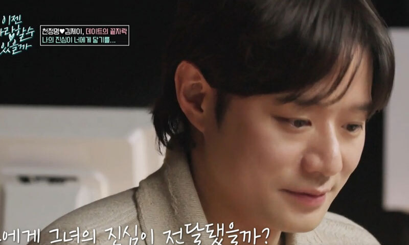 17일 방송된 tvN STORY 예능프로그램 ‘이젠 사랑할 수 있을까’에선 천정명이 16살 어린 소개팅녀 김제이와 만나는 모습이 담겼다.