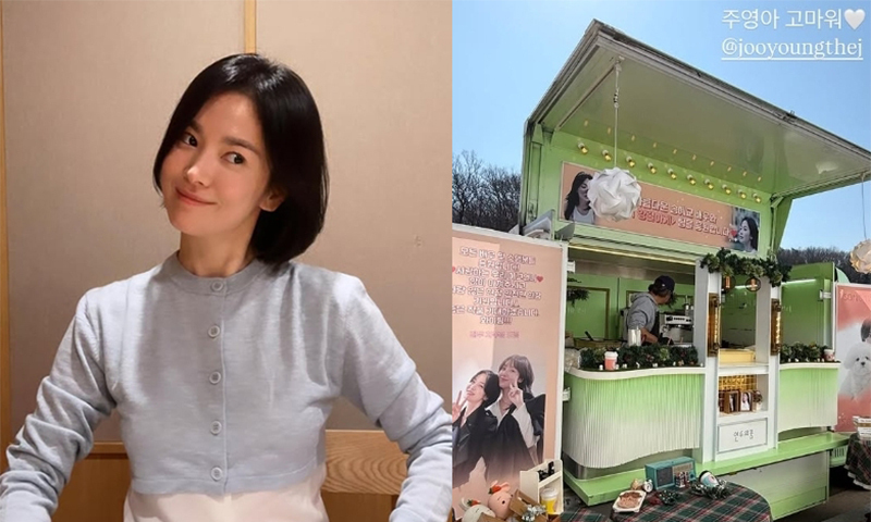 공개된 사진에는 차주영이 송혜교에게 보낸 응원의 간식차와 모습이 담겼다.