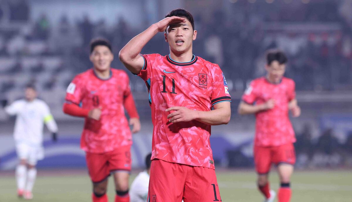 홍 감독은 이날 대폭 선발 라인업에 변화를 줬다. 최전방 스트라이커에 주민규(대전하나시티즌)을 내세우고 손흥민(토트넘)과 이재성(마인츠), 황희찬(울버햄튼)을 2선에 세우는 4-2-3-1 전술을 썼다. 중앙은 백승호(버밍엄 시티)와 박용우(알아인)이 맡았다.