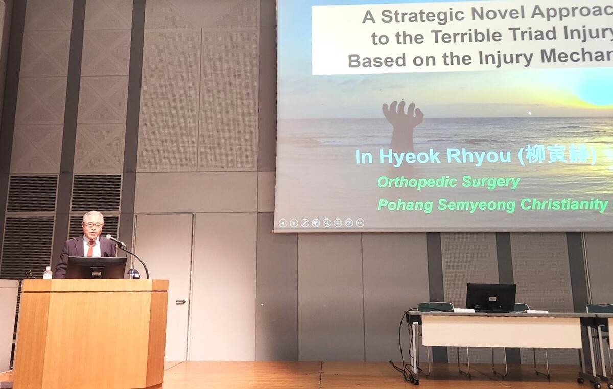 류인혁 원장은 ‘팔꿈치의 심각하고 복잡한 손상(Terrible Triad Injury)’에 대한 새로운 전략적 접근법(A Strategic Novel Approach to the Terrible Triad Injury)이라는 주제로 발표를 진행했다.