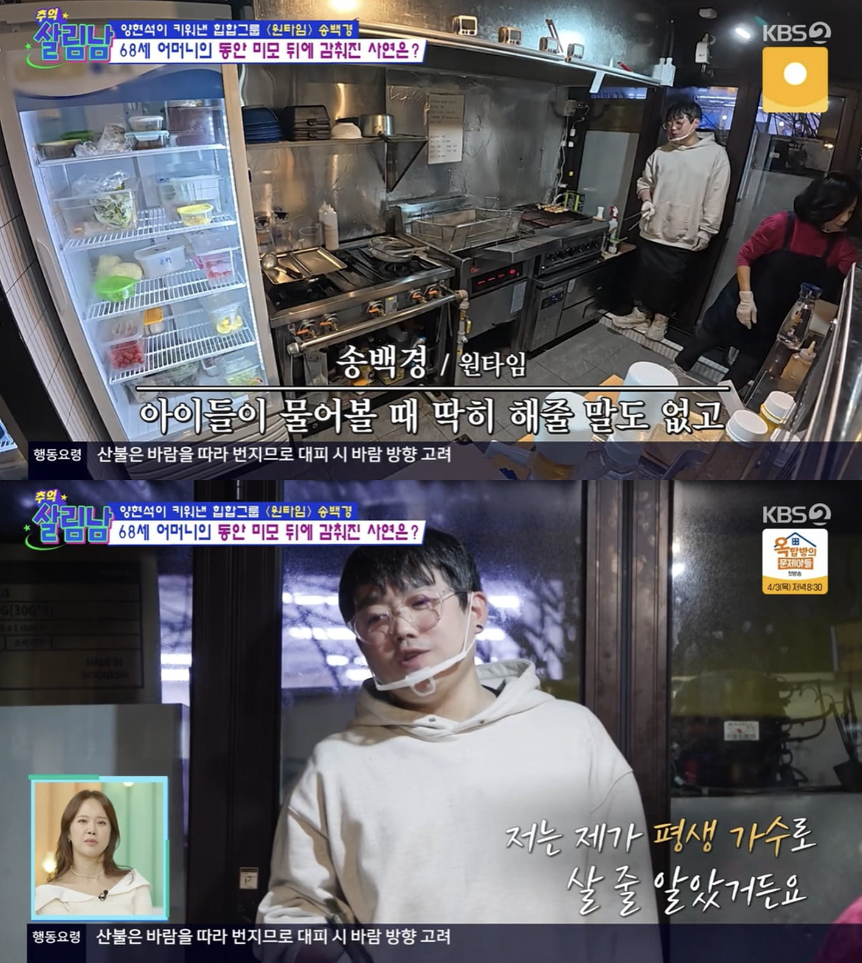 22일 오후 방송된 KBS 2TV 예능프로그램 ‘살림하는 남자들’에서 송백경의 일상이 공개됐다.