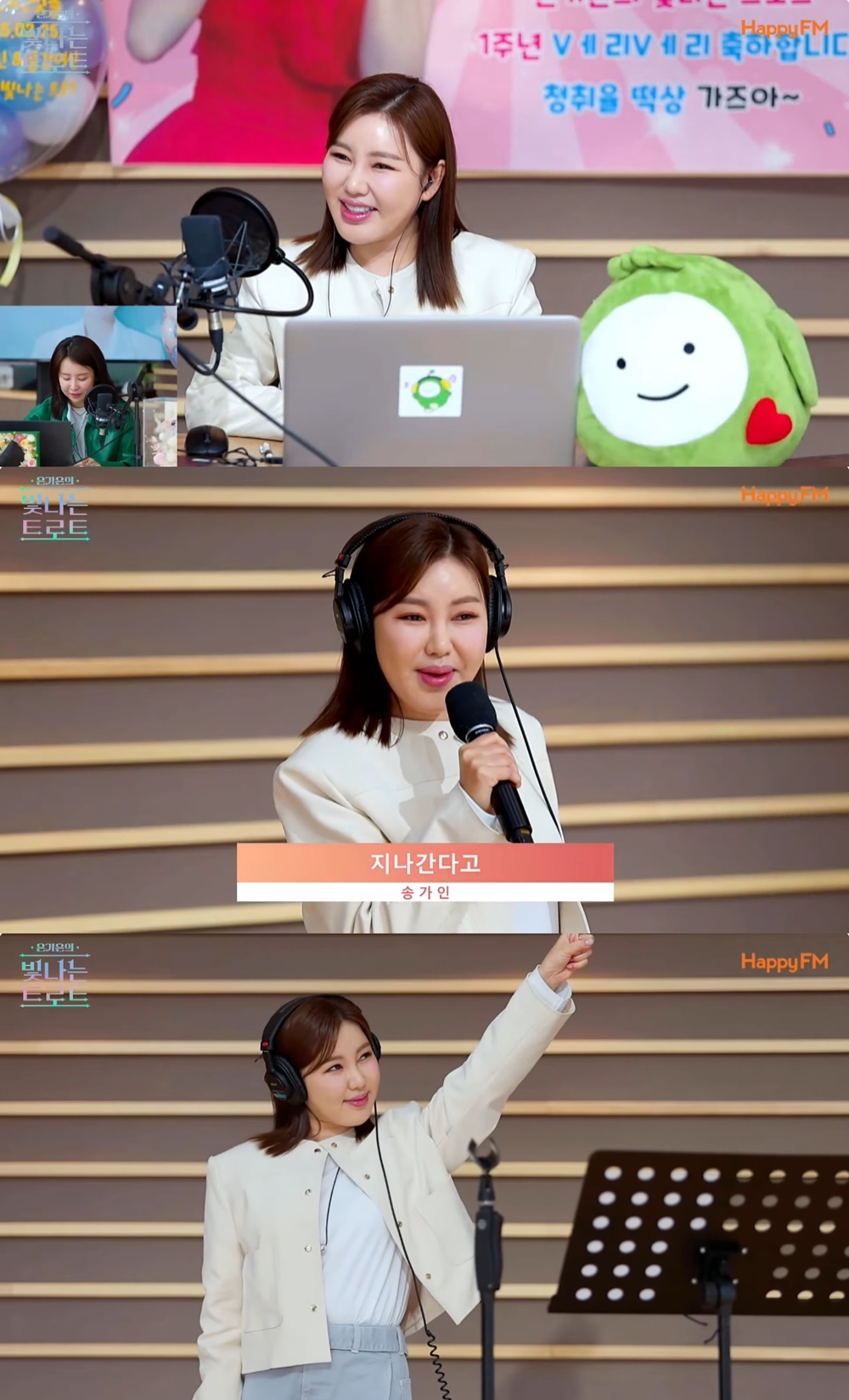 송가인은 25일 오후 2시부터 방송된 KBS Happy FM '은가은의 빛나는 트로트(이하 빛나는 트로트)'에 출연해 1주년을 맞은 프로그램을 축하했다.