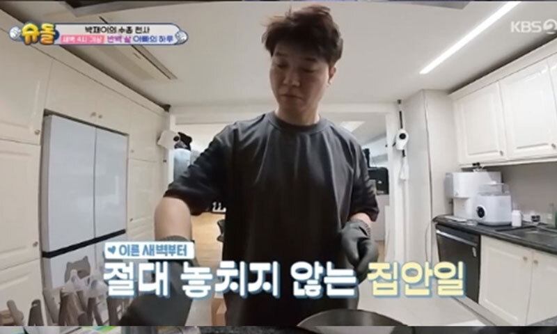 박수홍은 새벽 4시부터 일어나 영양제를 먹으며 건강을 관리했다. 이어 박수홍은 젖병을 씻었고 “홈쇼핑 일이 있어서 일찍 일어났고 일어난 사람이 보이면 일을 한다. 젖병이 떨어지면 큰일 아니냐”고 말해 부지런한 모습을 보였다. 최지우는 “너무 바람직하다. (육아) 막내가 너무 잘한다”고 감탄했다.