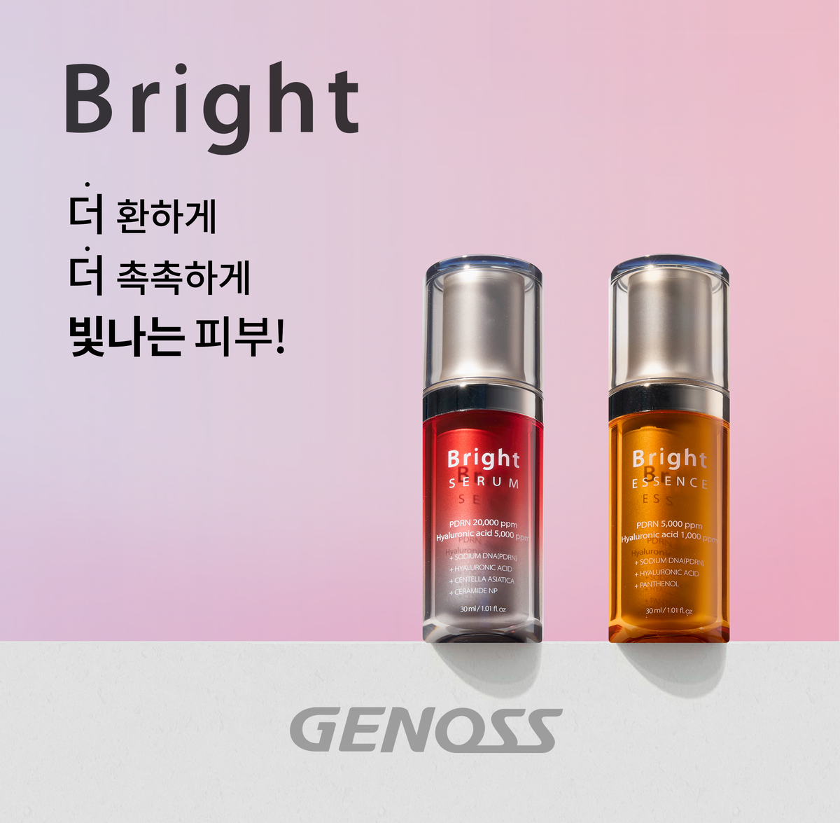 의료기기 전문기업 제노스(GENOSS Co.,Ltd.)가 데일리 피부 케어를 위한 ‘브라이트 세럼(Bright Serum)’, ‘브라이트 에센스(Bright Essence)’를 출시했다고 31일 밝혔다. 이번 신제품은 미용 및 의료 분야에서 널리 사용되는 PDRN(폴리데옥시리보뉴클레오타이드)과 고·저분자 히알루론산을 고품질로 적용해 보습 및 피부 진정 효과는 물론, 잡티 케어 성분을 추가하여 기능성을 한층 강화한 것이 특징이다.