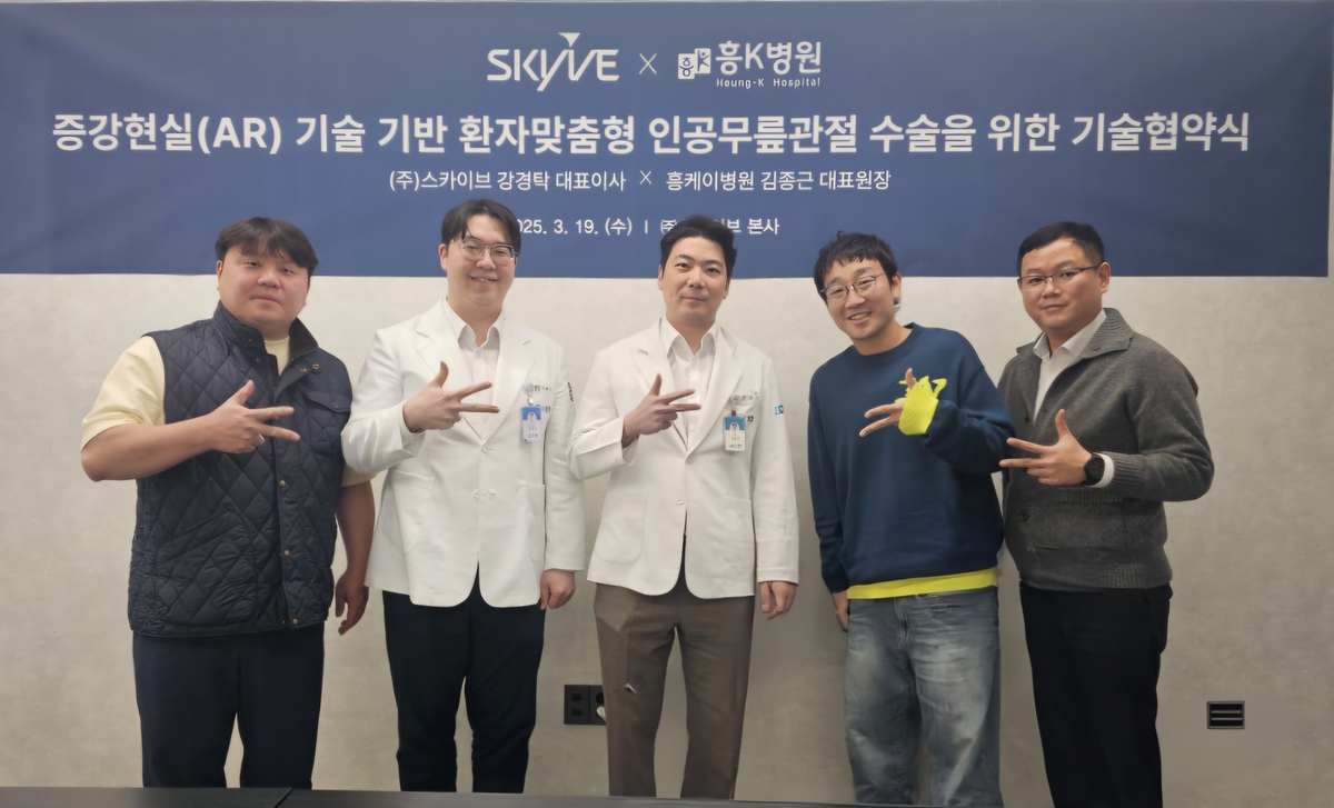 스카이브가 흥케이병원과 증강현실(AR) 기술 기반의 환자 맞춤형 인공무릎관절 수술을 위한 기술 협약을 체결했다.