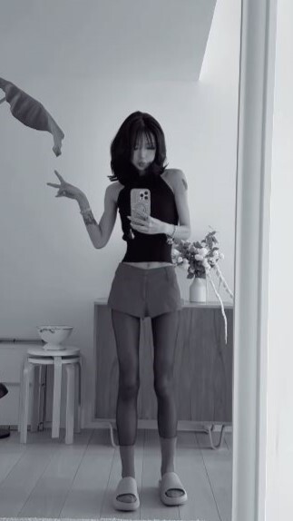 민소매 톱에 반바지를 입고 복근이 살짝 보이는 마른 몸매를 뽐냈다. 170㎝의 늘씬한 각선미까지 시선을 사로잡았다.