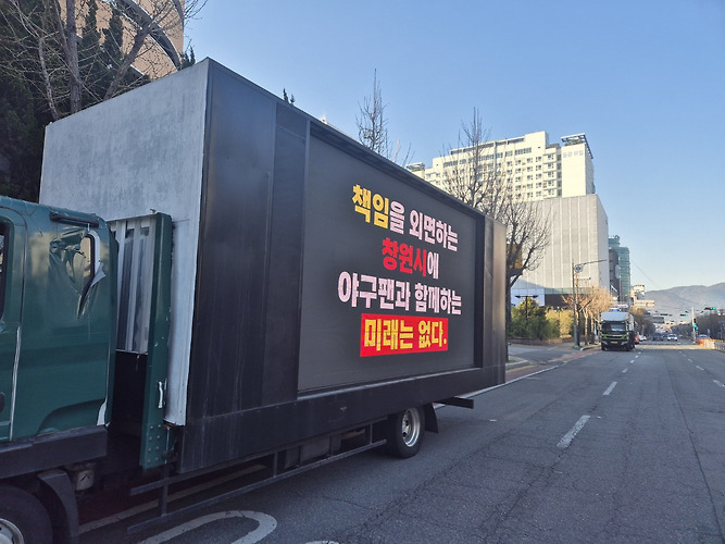 한편 이번 트럭 시위는 2일부터 3일까지 이틀간 진행될 예정이다. 이날 오전 8시부터 서울과 창원을 시작으로 오후 2시쯤 대전과 광주, 수원 구장 인근에서도 진행 중에 있다.