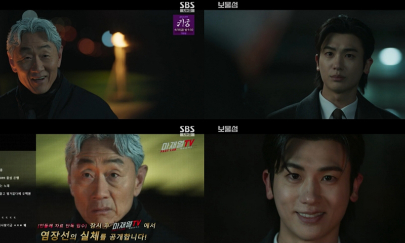 이어 염장선은 서동주를 건물 아래로 추락시키려 했다. 그 순간 드론 한 대가 떠올랐고 대형 전광판에서는 앞서 서동주가 ‘민들레 자료’를 넘겼던 기자의 개인방송 채널을 통해, 염장선의 모든 악행이 생중계되고 있었다. 서동주는 “태워버린 민들레는 플랜A, 마재열TV는 플랜B”라고 외쳤다. 짜릿함에 미소 짓는 서동주, 패닉 상태가 된 염장선이 교차되며 ‘보물섬’ 14회가 끝났다.