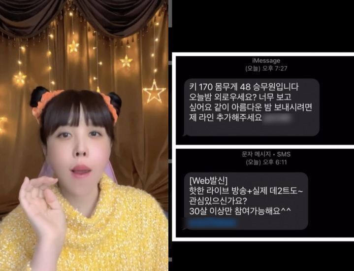 사진 속 메시지에는 ‘키 170㎝, 몸무게 48㎏ 승무원입니다. 오늘 밤 외로우세요? 너무 보고 싶어요. 같이 아름다운 밤 보내시려면 제 ID 추가해주세요’라는 내용과 함께 ‘핫한 라이브 방송+실제 데이트도 관심 있으신가요? 30살 이상만 참여 가능해요’ 등의 문구도 포함되어 있었다.
