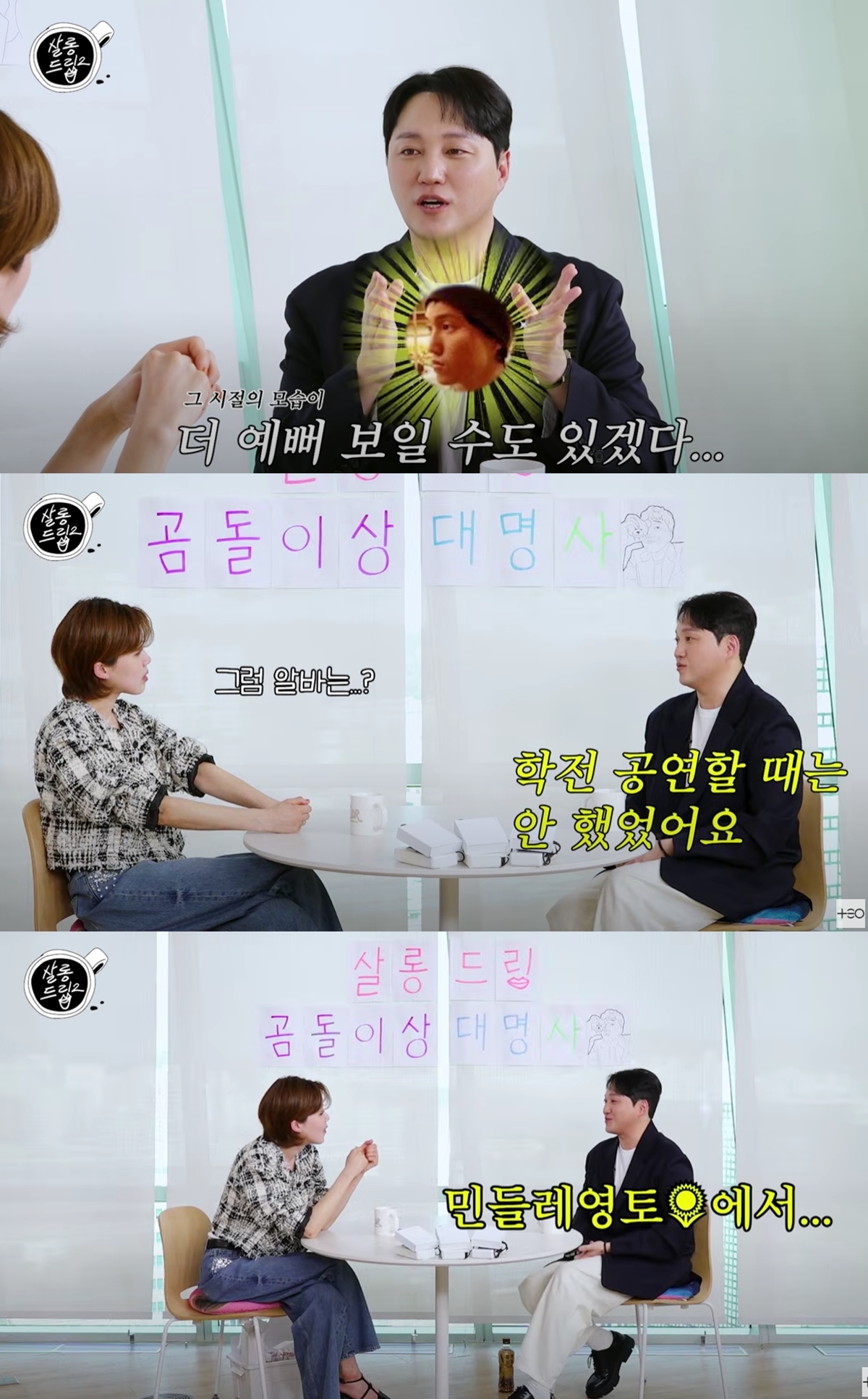 이어 김대명은 “저는 대학로점이었다, 아 신촌에는 저렇게 멋있는 사람들이 많이 있었구나“라며 “민들레 영토 회의실에서 항상 코미디를 짜시는 분들이 많았다. 너무 재미있어 보였다. 지금은 다 스타가 됐다“고 말했다.