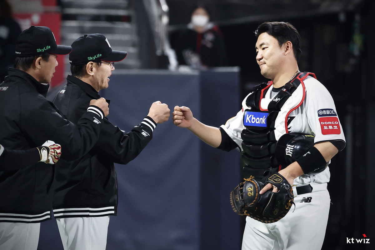이날 KT는 경기에 앞서 멜 로하스 주니어(우익수)-허경민(3루수)-김민혁(우익수)-장성우(포수)-강백호(지명타자)-김상수(2루수)-황재균(1루수)-배정대(중견수)-장준원(유격수)으로 이어지는 배팅오더를 발표했다.
