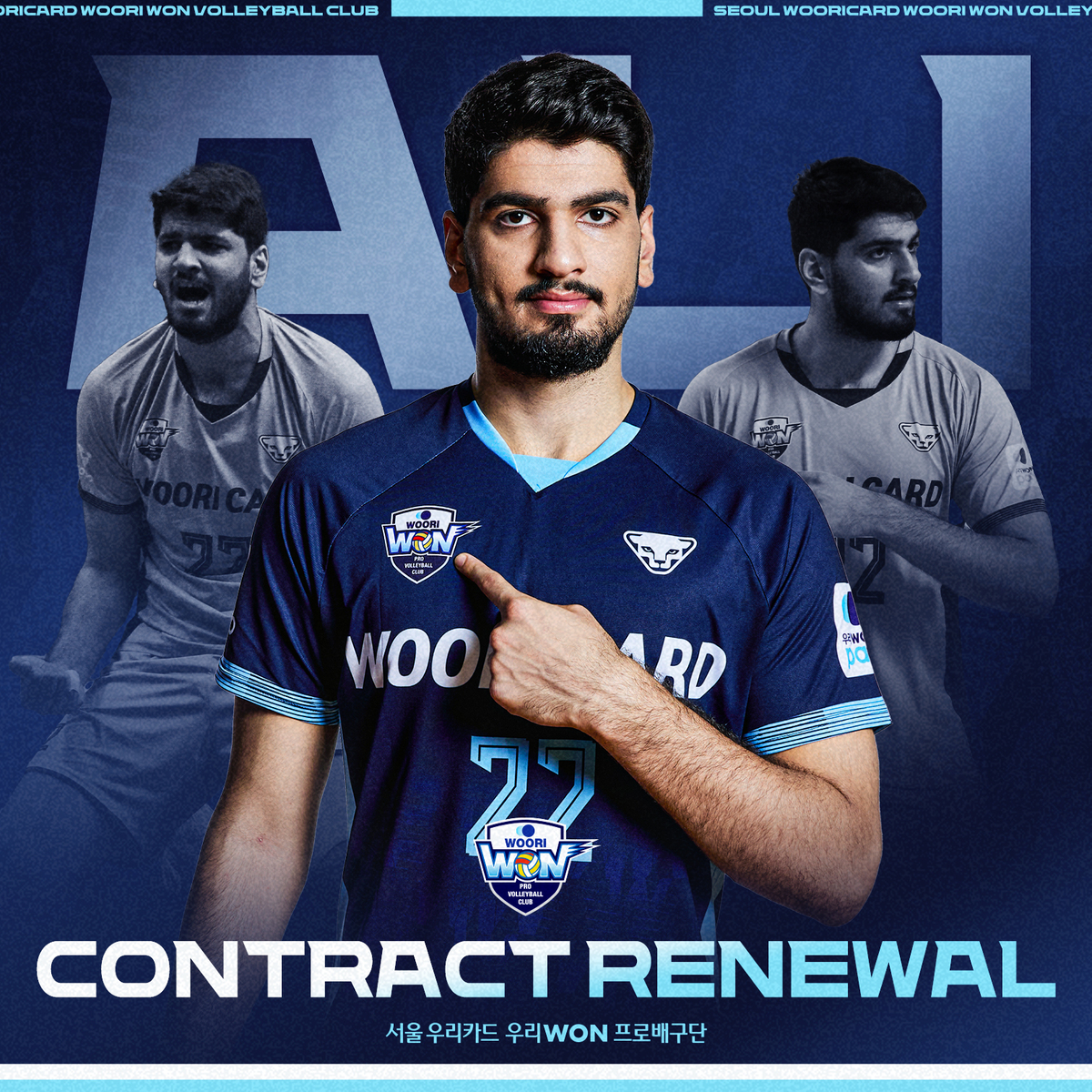 남자프로배구 우리카드가 아시아쿼터 알리 하그파라스트(등록명 알리)와 다시 한번 손잡는다. 우리카드는 “알리와 재계약을 체결했다”고 10일 전했다.
