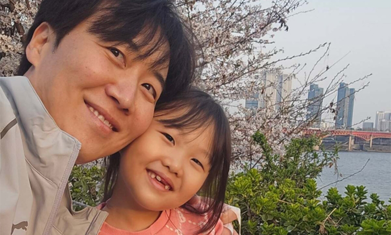 공개된 사진 속 도경완은 딸 하영이와 함께 한강 벚꽃길에서 환한 미소를 짓고 있다. 하영이는 앞니가 빠진 천진난만한 표정으로 사랑스러움을 더했다. 특히 장윤정을 쏙 빼닮은 미소가 눈길을 사로잡는다.