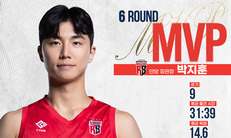 박지훈은 6라운드 최우수선수(MVP) 투표에서 총 유효 투표수 101표 중 47표를 획득해 고양 소노 이정현(34표)을 제치고 개인 통산 첫 번째 라운드 MVP 영예를 안았다.