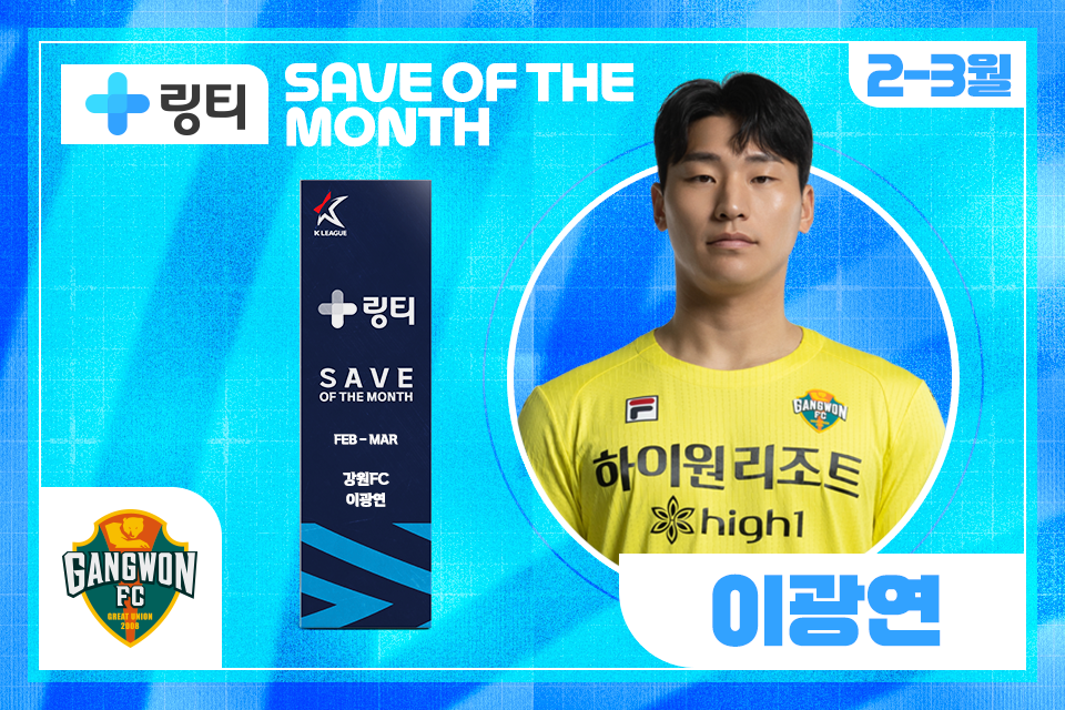 강원FC 이광연이 2025시즌 2-3월 K리그 ‘의사가 만든 링티 이달의 세이브’를 수상했다.