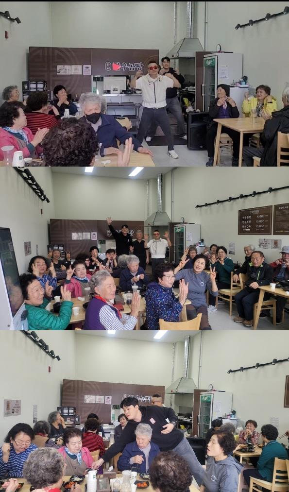 재능기부자 노현태와 김경민이 참여한 이번 나눔은 한 어르신이 운영하는 '곰탕집'의 어려움을 나누고자 지역어르신을 초청해 재미와 웃음, 건강과 활력을 더해 공연과 함께 따뜻한 한 끼를 대접하며 나눔을 실천하는 뜻깊은 시간을 보냈다.