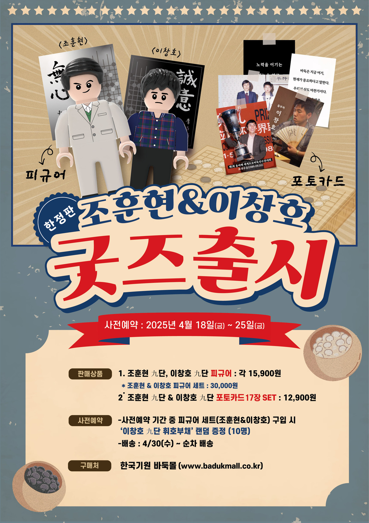 이번 굿즈는 국민적 사랑을 받아온 두 프로기사를 오마주하는 의미를 담아 포토카드와 피규어로 제작됐다. 스승과 제자의 깊은 서사가 담긴 명승부와 명언을 포토카드로 담았으며, 두 사람을 닮은 피규어가 제작됐다. 굿즈는 오는 18일부터 25일까지 사전 예약 판매를 진행한다.