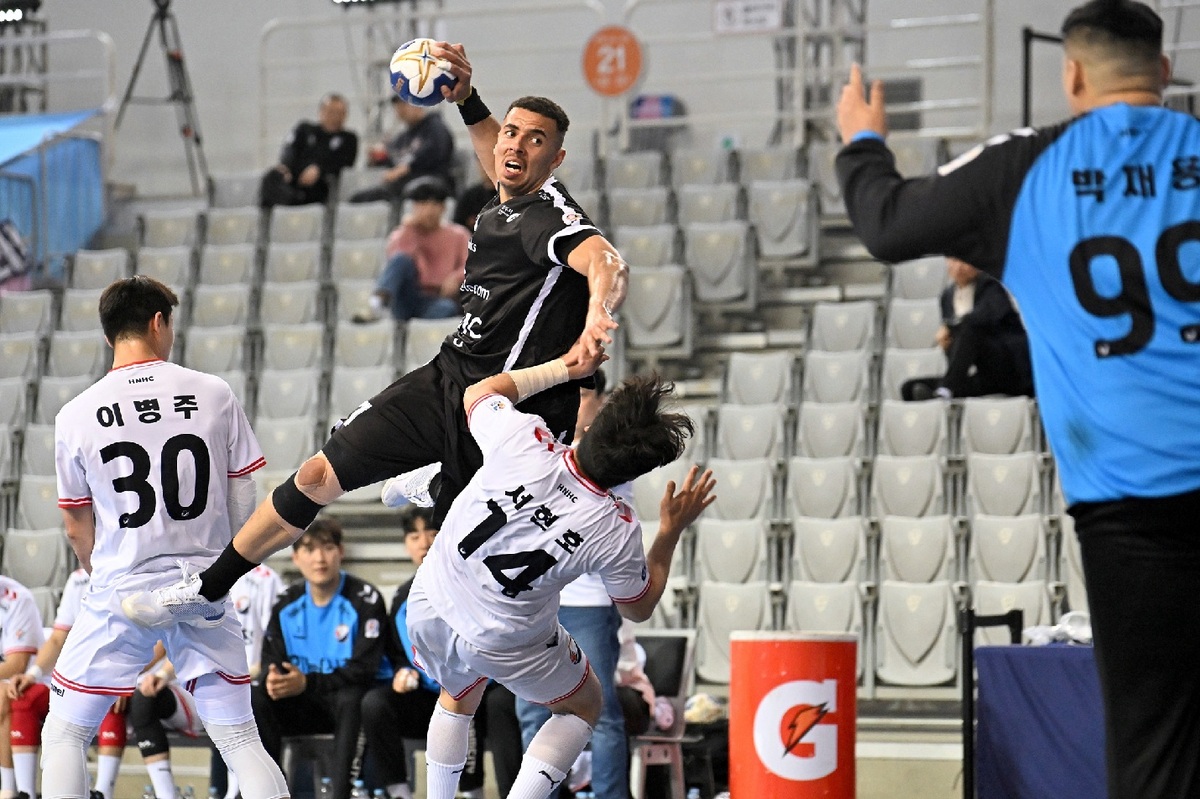 전반 초반에 하남시청이 박시우의 골을 시작으로 3골을 연달아 넣으면서 출발했지만, 반격에 나선 SK호크스의 기세도 만만치 않았다. 하지만 하민호의 2분 퇴장과 함께 하남시청이 다시 격차를 벌렸다. 공격 기회를 잘 살렸다. 빠른 패스와 움직임으로 윙을 적극 활용했다. 코트를 넓게 쓰면서 박광순을 비롯한 여러 공격 옵션이 상대 수비를 괴롭혔다. SK호크스 누노 알바레즈 감독은 5대1 수비대형을 내세우며 반전을 도모했지만, 결국 전반은 하남시청의 16-13 리드로 끝났다.