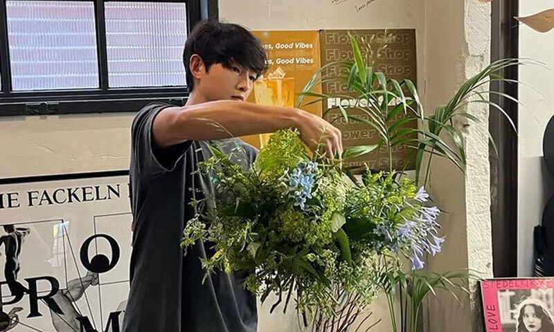 지난 16일 한 플로리스트가 자신의 소셜미디어 계정에 “지난여름부터 꽃 수업에 함께하신 송중기 배우님”이라며 사진을 올렸다.