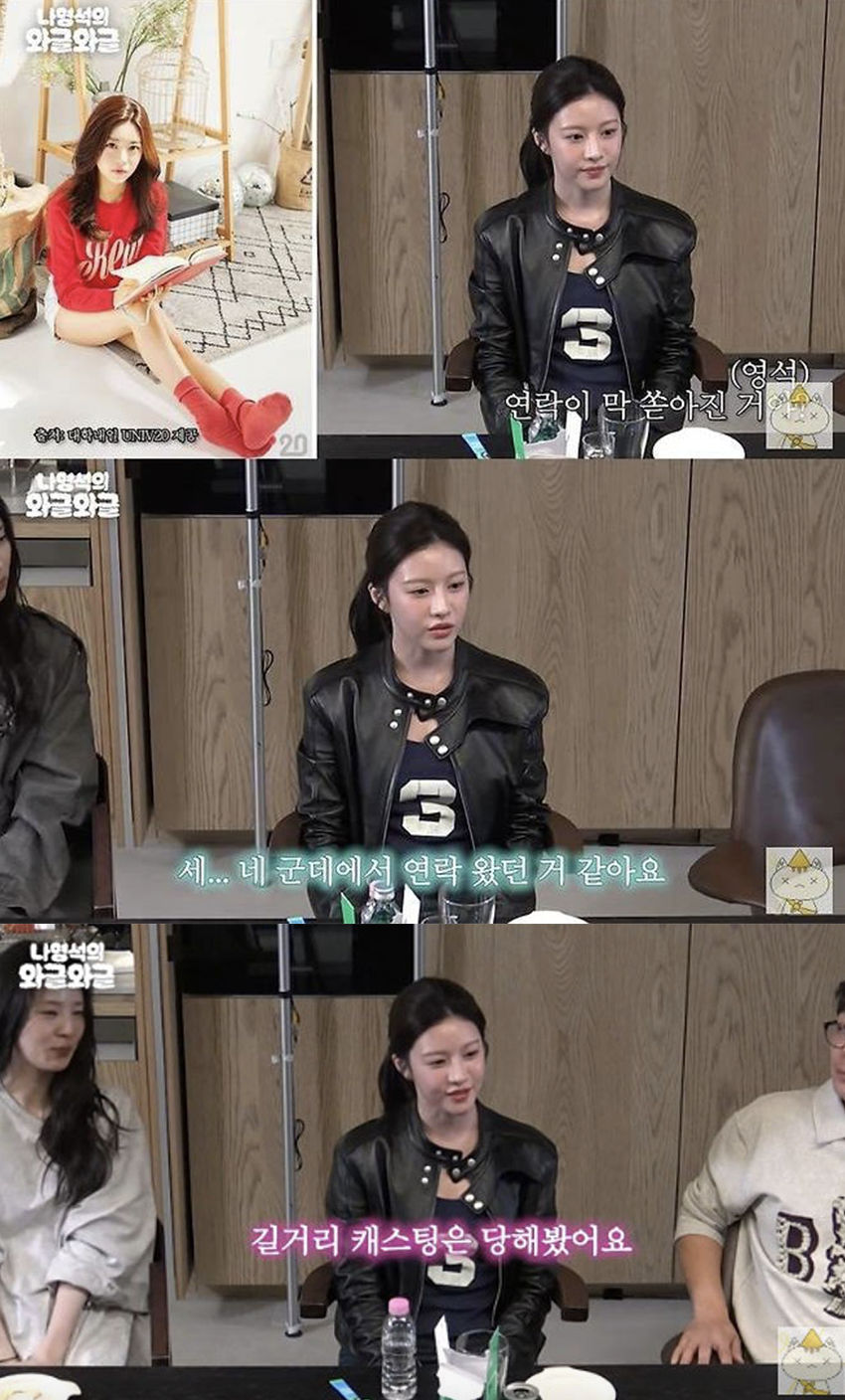 이어 고윤정은 “사진과 언니가 ‘대학내일’이라는 잡지의 모델 신청을 해보라며 사진을 찍어주고 사진도 골라줬다. 사진을 냈는데 3일 후에 바로 잡지 측에서 연락이 왔다. 잡지가 발간된 이후로 (캐스팅) 연락이 왔었다”라고 털어놨다. 이에 나 PD가 “잡지에 얼굴이 한 번 실리자마자 연락이 막 쏟아진 거냐”고 물었다. 고윤정은 “네 군데에서 연락이 왔던 것 같다.”라는 답에 나 PD는 “나도 내일 찍어야겠다”고 말하며 웃음을 자아냈다.