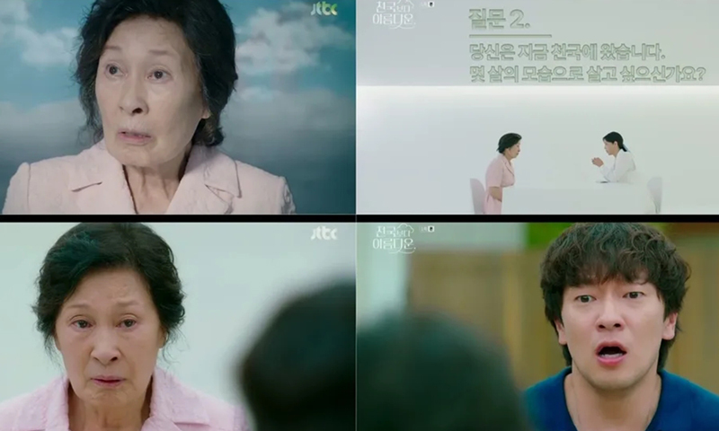 남편을 만나러 가는 길, 이해숙은 80세 나이로 온 탓에 무릎은 삐걱댔지만 가슴은 두근거렸다. 남편의 말대로 길을 따라 가지런히 쌓인 돌담과 환하게 핀 능소화가 반기는 집이 나타났고, 두 사람의 이름이 나란히 새겨진 문패를 보며 이해숙은 고낙준도 같은 마음으로 자신을 기다리고 있음에 안도했다. 하지만 그 문을 열고 나타난 이는 30대의 젊은 시절로 돌아간 고낙준이었다. 서로가 서로를 예기치 못한 모습으로 마주하게 된 이해숙, 고낙준의 ‘웃픈 재회’가 다음 회에 대한 궁금증을 증폭시켰다.
