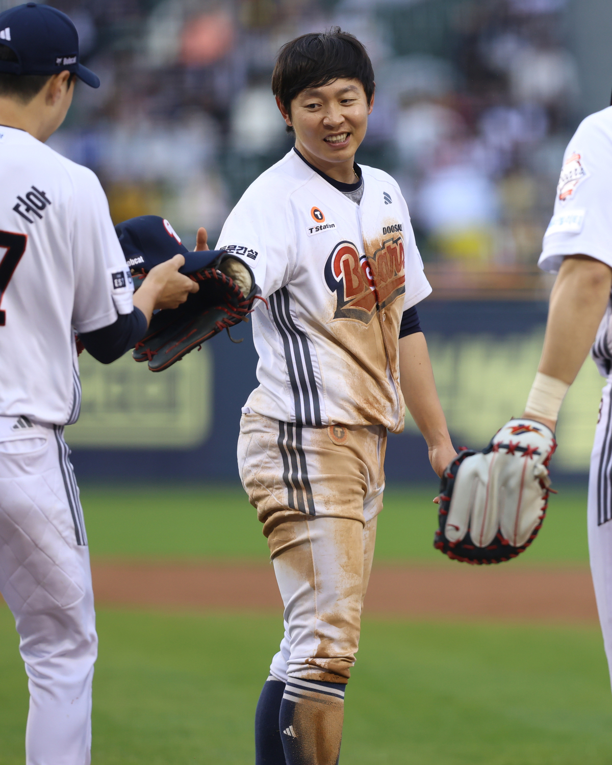 1700경기 출전은 KBO리그 통산 48번째, 1500안타는 50번째 다. 숱한 프로야구 대선배들의 뒤를 이었다. 원년구단 중 하나인 베어스 프랜차이즈로 좁히면 값어치는 올라간다. 특히 1500안타는 구단 역대 2위 기록이다. 김동주(은퇴·1710개)만 위에 있다. 좌타자 및 외야수로는 최초인 셈이다. 2009년 KBO 드래프트 2차 5라운드 전체 39순위로 두산 유니폼을 입고 원클럽맨으로 빚어온 훈장이다.