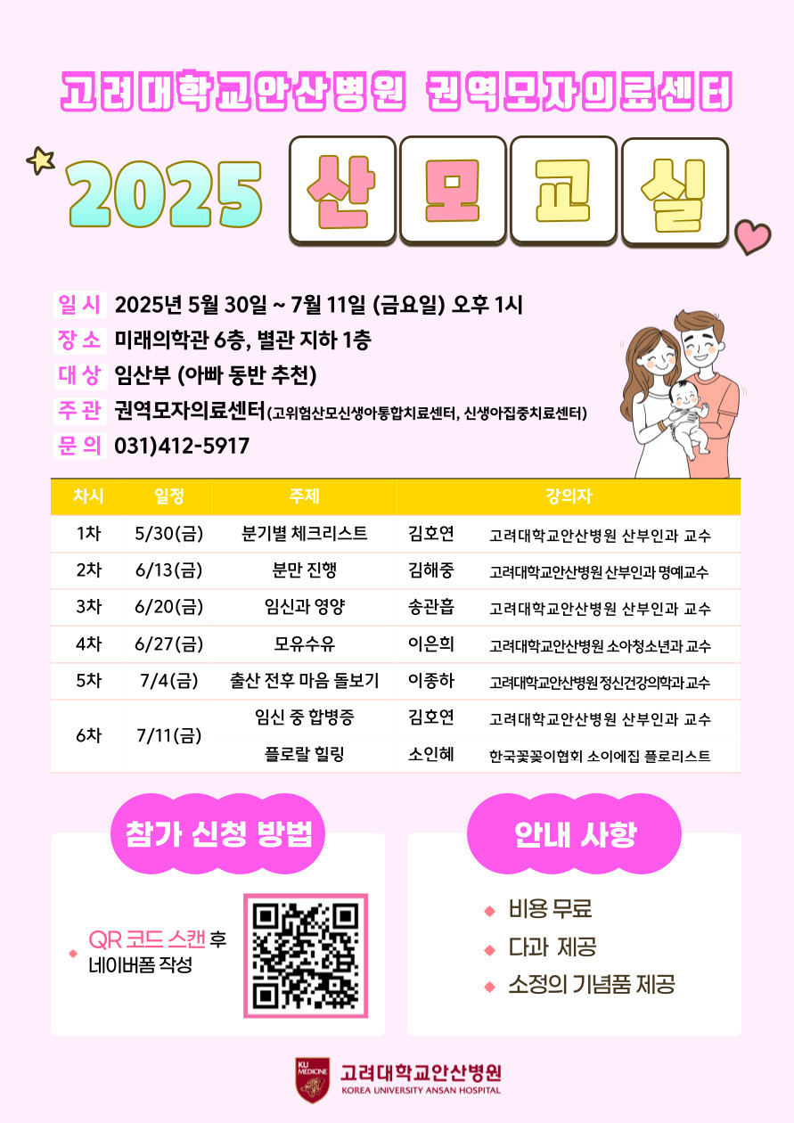 한편, 고대안산병원은 건강한 출산과 산후 관리에 필요한 정보를 제공하기 위해 2023년부터 산모교실을 운영하고 있다.