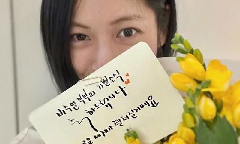 공개된 사진에는 꽃다발 선물을 받은 반소영의 근황이 담겨 있다. 꽃다발에는 “비주얼 부부의 기쁜 소식 축하드립니다. 경이로운 세계가 펼쳐질 거예요”라는 메시지로 눈길을 끌었다.