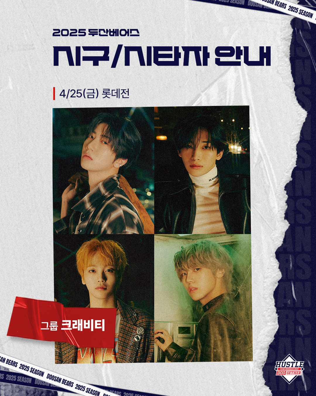 프로야구 두산이 25일 잠실야구장에서 열리는 롯데와의 2025시즌 KBO리그 정규리그 맞대결에서 승리 기원 시구∙시타를 진행한다.