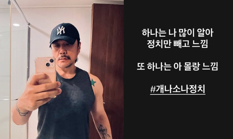 JK김동욱은 27일 인스타그램 스토리에 "하나는 나 많이 알아. 정치만 빼고 느낌. 또 하나는 아 몰랑 느낌. #개나소나정치"라고 적었다.