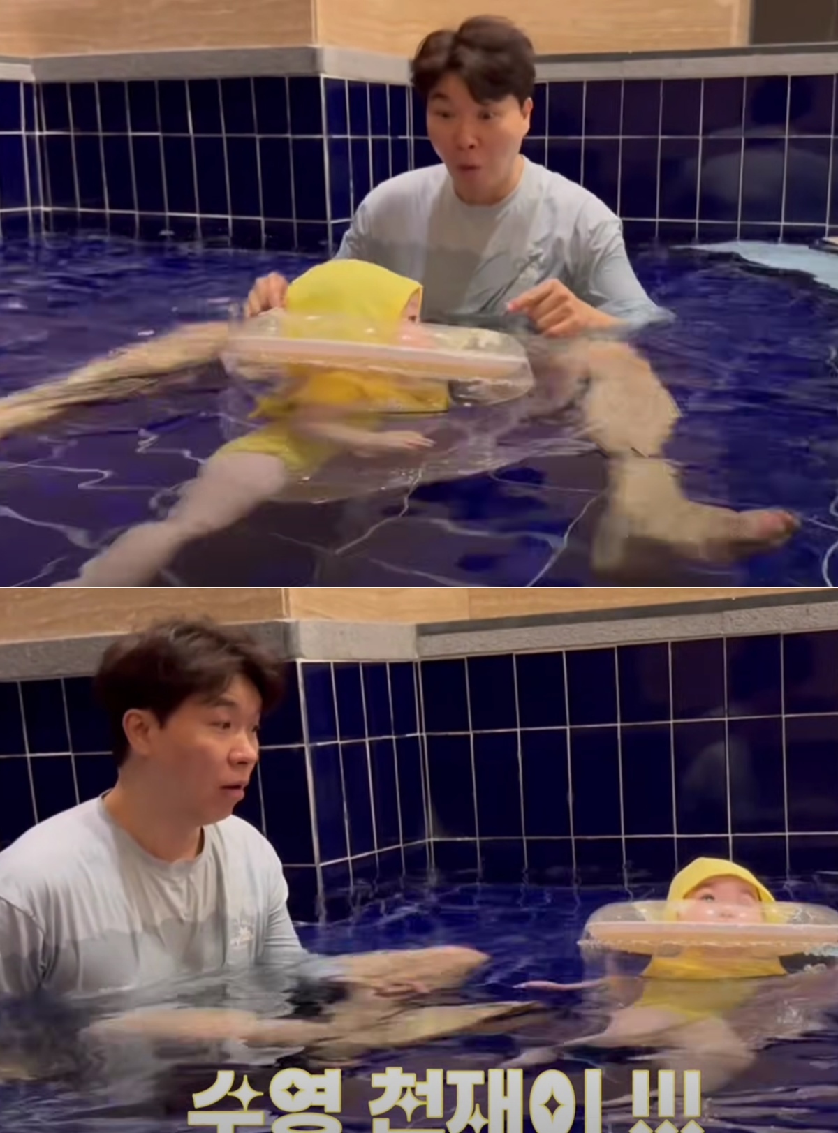 해당 영상에서 박수홍과 김다예는 생후 6개월 딸 재이와 함께 수영에 도전하는 모습이 그려졌다. 노란 수영복을 입은 귀여운 재이의 모습에 훈훈함도 잠시, 목튜브를 끼고 발장구를 치는 재이의 모습에 박수홍은 놀랐다.