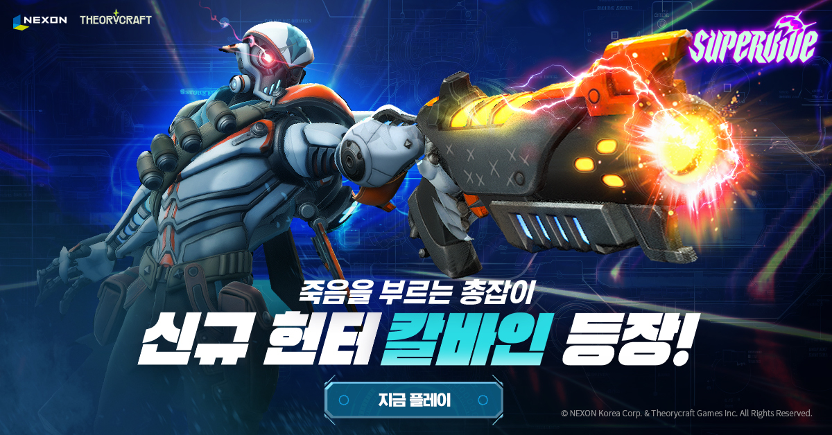 넥슨의 신작 MOBA 배틀로얄 PC 게임 '슈퍼바이브'(띠어리크래프트 제공)는 신규 헌터(캐릭터) 칼바인을 공개했다.