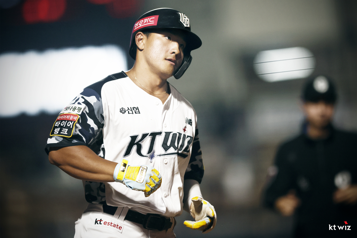 다소 파격적인 라인업이다. 베테랑 황재균이 올 시즌 첫 2번타자로 나서며, 2003년생 신예 안현민이 3번에 전진 배치된 것. 이날 경기 전 취재진과 만난 이강철 KT 감독은 “2번을 두고 권동진을 고민했는데, 상대 왼손 투수(콜 어빈)를 고려해 내린 판단”이라고 설명했다. 이어 “(안현민의 경우) 방망이가 좋다고 봤다. 한 번 쳐보라고 3번 타순에 넣었다”고 덧붙였다.