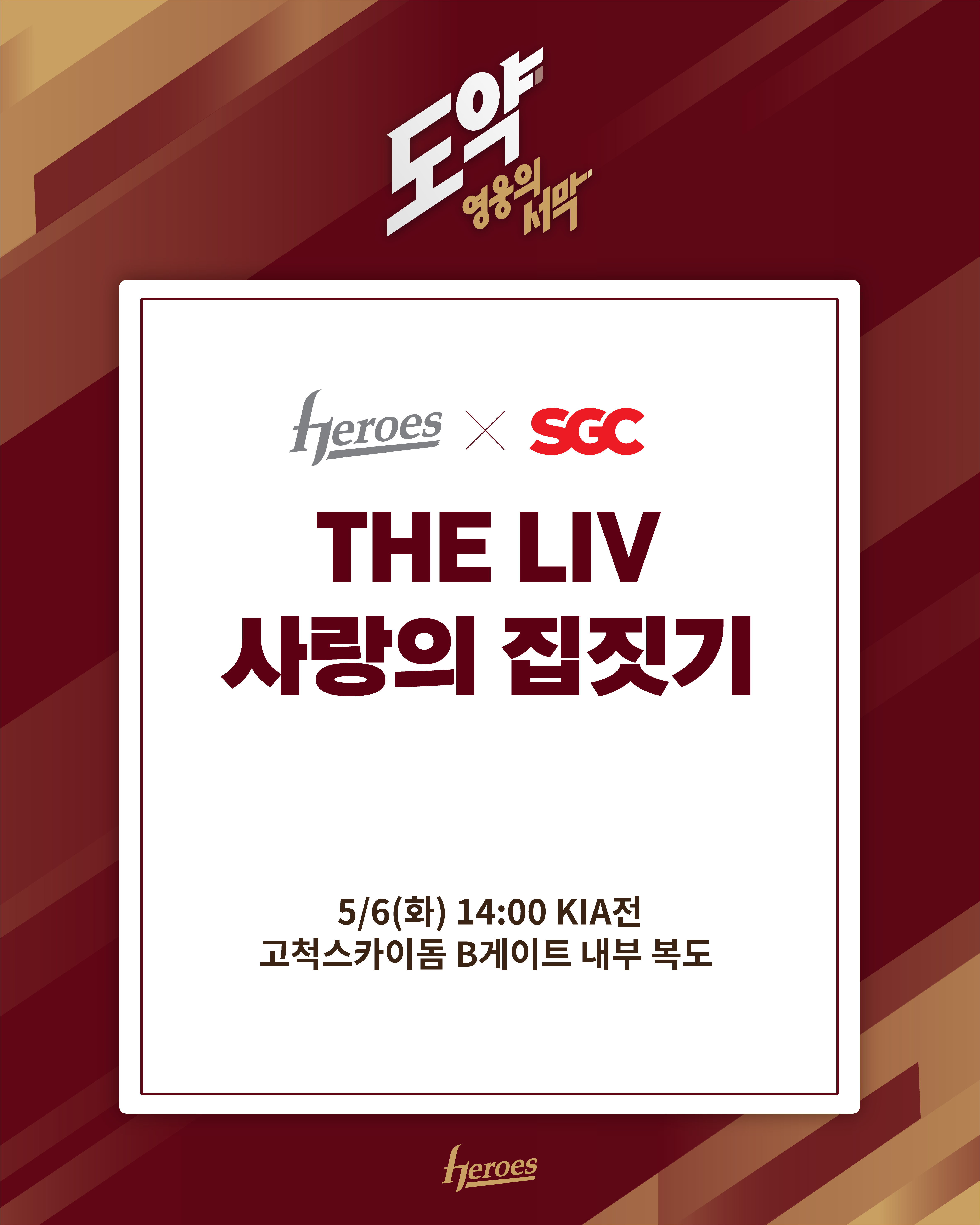 프로야구 키움히어로즈(대표이사 위재민)와 SGC그룹은 6일 오후 2시 서울 고척스카이돔에서 열리는 KIA와의 경기 시작 전 ‘THE LIV 사랑의 집 짓기’ 행사를 실시한다.