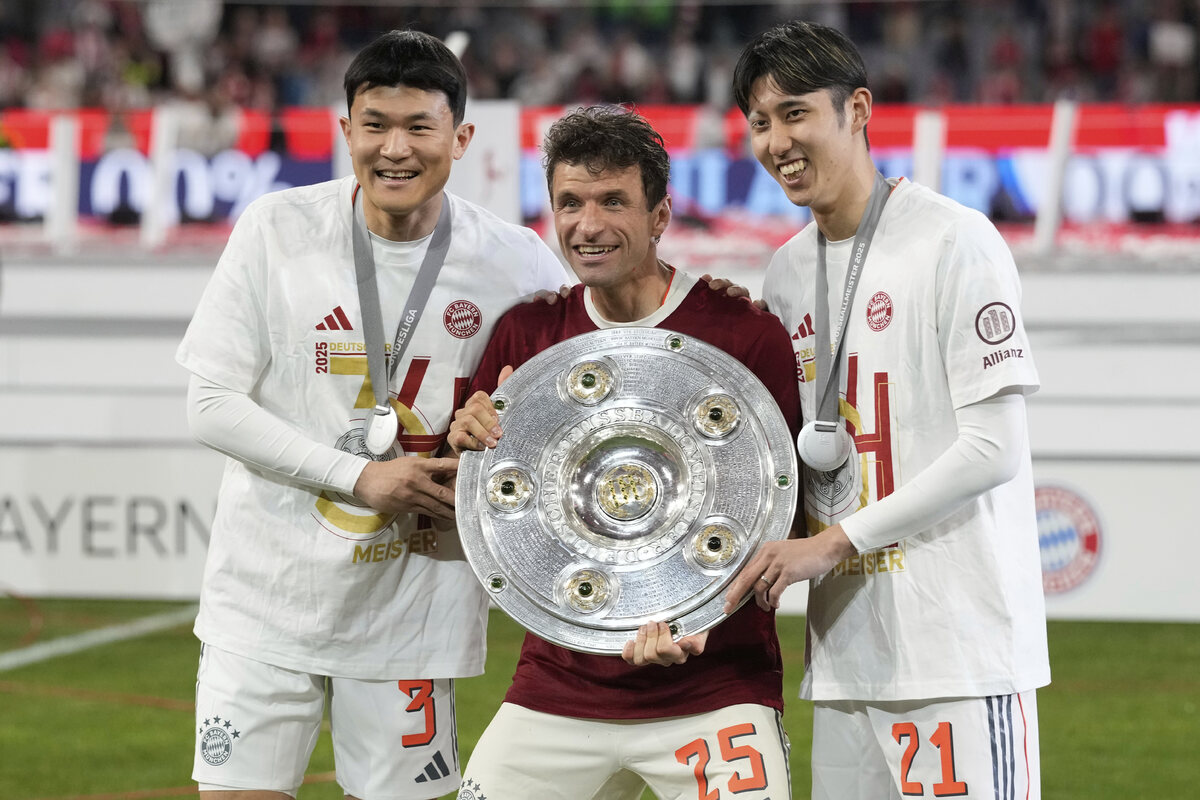 수줍게 트로피를 번쩍 들어 올렸다. 한국 축구 선수 최초로 유럽 5대 리그 중 2개의 리그에서 우승을 차지한 김민재(뮌헨)가 활짝 웃었다.