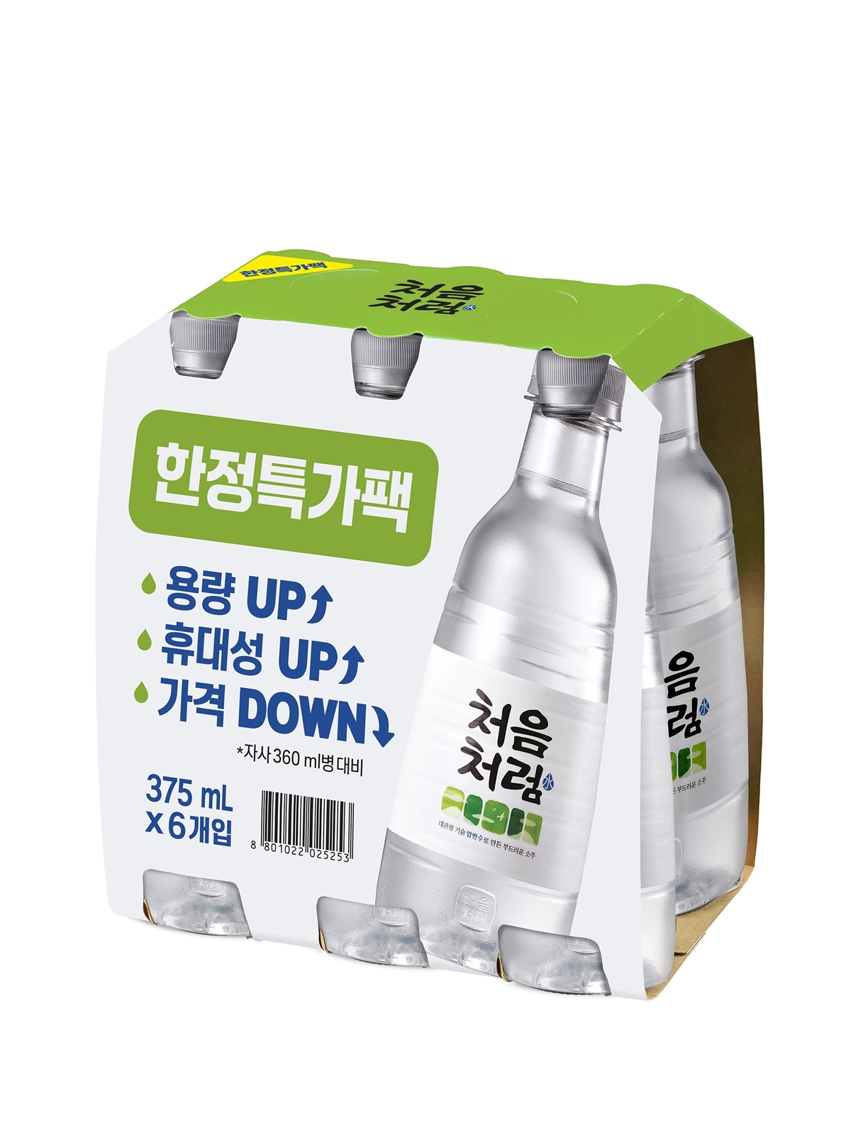 꾸준한 페트 소주의 성장 트렌드에 맞춰 새롭게 선보이는 신제품은 360㎖ 병 제품 보다 용량은 15㎖ 증가했지만 가격은 더 저렴하다. 페트 제품 특유의 우수한 휴대 편의성도 특징이다. 형마트와 슈퍼마켓에서 6입 패키지 혹은 박스 단위로 한정 판매할 예정이다.
