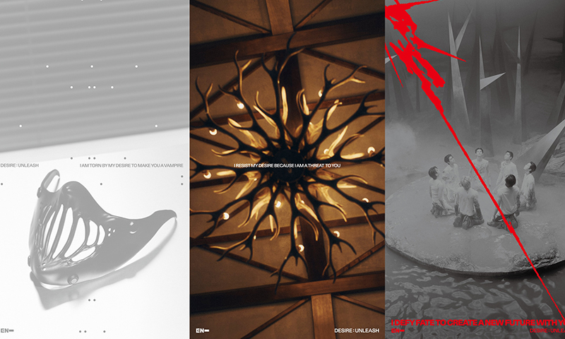 콘셉트 티저 속 의미심장한 문구도 눈길을 끈다. 각 티저에는 ‘I AM TORN BY MY DESIRE TO MAKE YOU A VAMPIRE’(나는 당신을 뱀파이어로 만들고 싶은 욕망에 고민하고 있다), ‘I RESIST MY DESIRE BECAUSE I AM THREAT TO YOU’(나는 당신에게 위협적인 존재이기에 내 욕망에 저항한다), ‘I DEFY FATE CREATE A NEW FUTURE WITH YOU’(나는 당신과 새로운 미래를 만들기 위해 운명을 거스른다)가 적혀 있다. 이 문구들이 이번 앨범의 주요 키워드인 ‘욕망’(Desire)과 어떤 연결점을 가질지 팬들의 추측이 이어지고 있다.