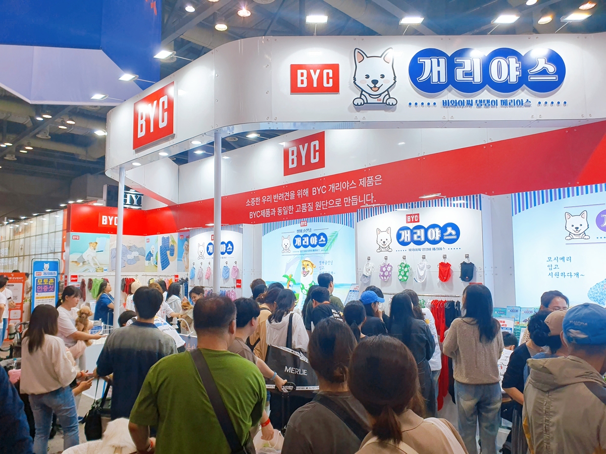 모시메리, 난닝구세트, 쿨런닝, 써머 쿨런닝, 할매꽃나시 등 다양한 스타일의 개리야스 신제품 외에도 부스에 준비된 포토존 역시 눈길을 끌었다. 인기 드라마 ‘폭삭 속았수다’를 오마주한 패널에서 사진을 찍는 반려견이 많았다. BYC는 인증샷을 SNS에서 업로드한 방문객에게 반려견용 쿨 스카프를 선물했다(일당 선착순 50개).