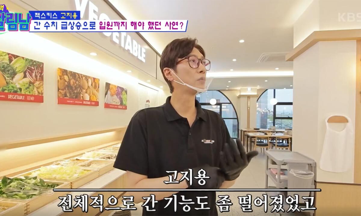 이날 방송에서 고지용은 눈에 띄게 야윈 모습을 보여 건강이상설을 의식한 듯 “2년 전 간 기능이 급격히 떨어져 입원 치료를 받았다”고 털어놨다.
