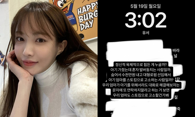 "숨어서 수천만 원 내고 대형 로펌 선임해서 아기 엄마를 스토킹으로 고소하는 사람일까?"라고 덧붙였다.