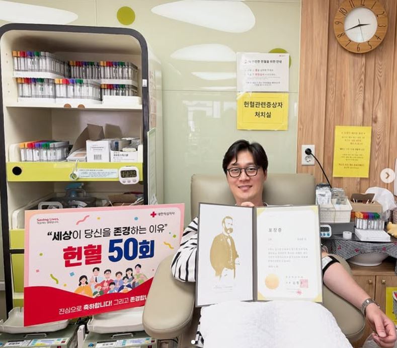 오승훈은 50회 헌혈을 마친 후 금장을 받게 됐다. 헌혈 횟수에 따른 상장 제도에 관해서도 설명하며 “25회는 은장, 50회는 금장, 그 이후에는 100회, 200회까지 상장이 주어집니다. 오늘 금장을 수여받아 기쁩니다”라고 설명했다.