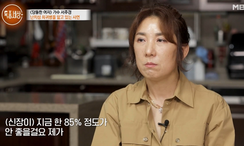서주경은 매달 병원을 찾아 정밀검사를 받고 있다는 서주경은 다낭성 신장 증후군을 앓고 있다며 “1~4기 중에 3기다. 4기로 넘어가는 걸 알 수가 없다. 급성으로 갈 수도 있고, 지금 신장의 85% 정도가 안 좋을 것”고 말했다.