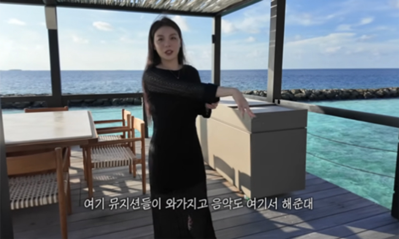 이들 부부는 두바이 경유 후 몰디브로 향했고, 현지에서 수상비행기를 타고 약 40분을 이동해 도착한 숙소는 5성급 럭셔리 리조트였다. 해당 리조트는 몰디브 내에서도 신혼여행 명소로 알려져 있으며, 1박 요금이 최소 130만 원부터 시작된다.