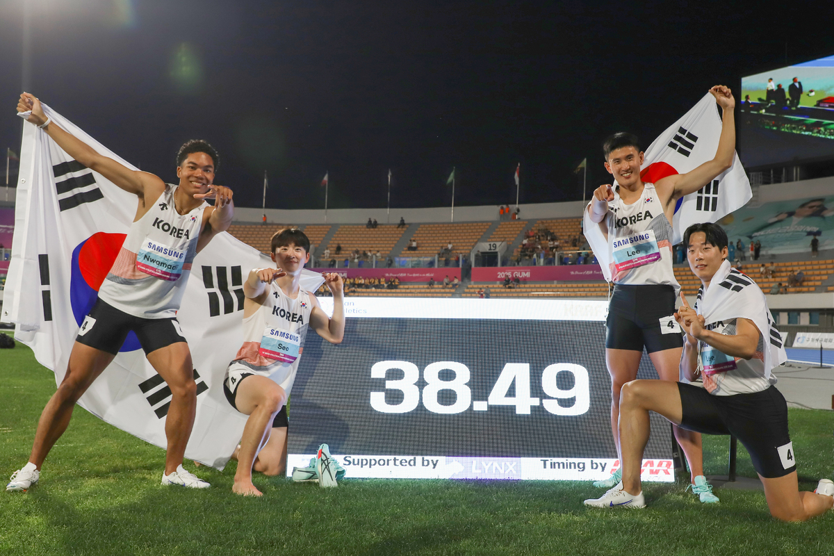 ‘디펜딩 챔피언’ 태국(38초78)을 제쳤고, 3위 홍콩(39초10)도 따돌렸다. 2023년 방콕 대회서 태국이 쓴 38초55의 대회 기록도 0.06초 줄인 쾌속 질주다.